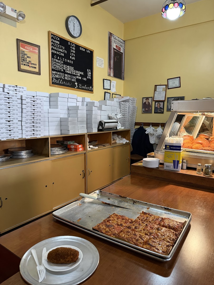 Gem...Wow This restaurant is one of the best pizza in Boston! It's on Hanover Street, Galleria Umbertos is a cash only. Eat in and take out lunch spot. They get long lines and are opened for lunch and close when the food has sold out for the day. No leftovers ever! The restaurant is owned by two brothers both natives of the North End. Hands down the best pizza in Boston! from the Pizza dough to the sauce you can taste the love and hard work put into this pizza l love it! They also sell pizza dough and pizza by the pan for take out...The interior is old school and outdated but it's authentic... The prices could not be more reasonable...If you like cheap, tasty, fresh authentic Italian food served in a warm environment in an old school, Mom and Pop restaurant with amazing prices, this place is for you! 100% recommend!
